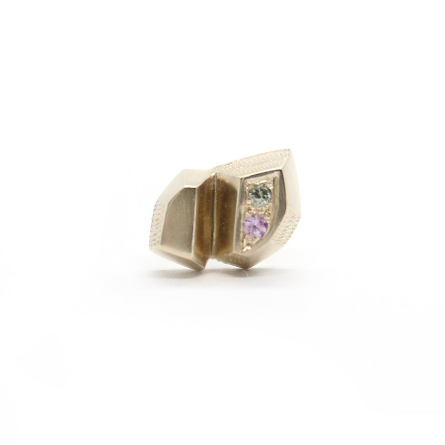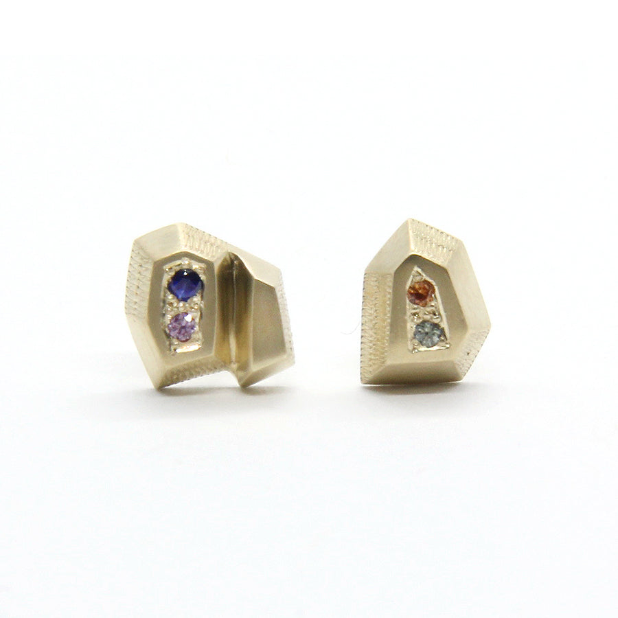 Irregular faceted clusters of gold. Dotted with a rainbow of sapphires.